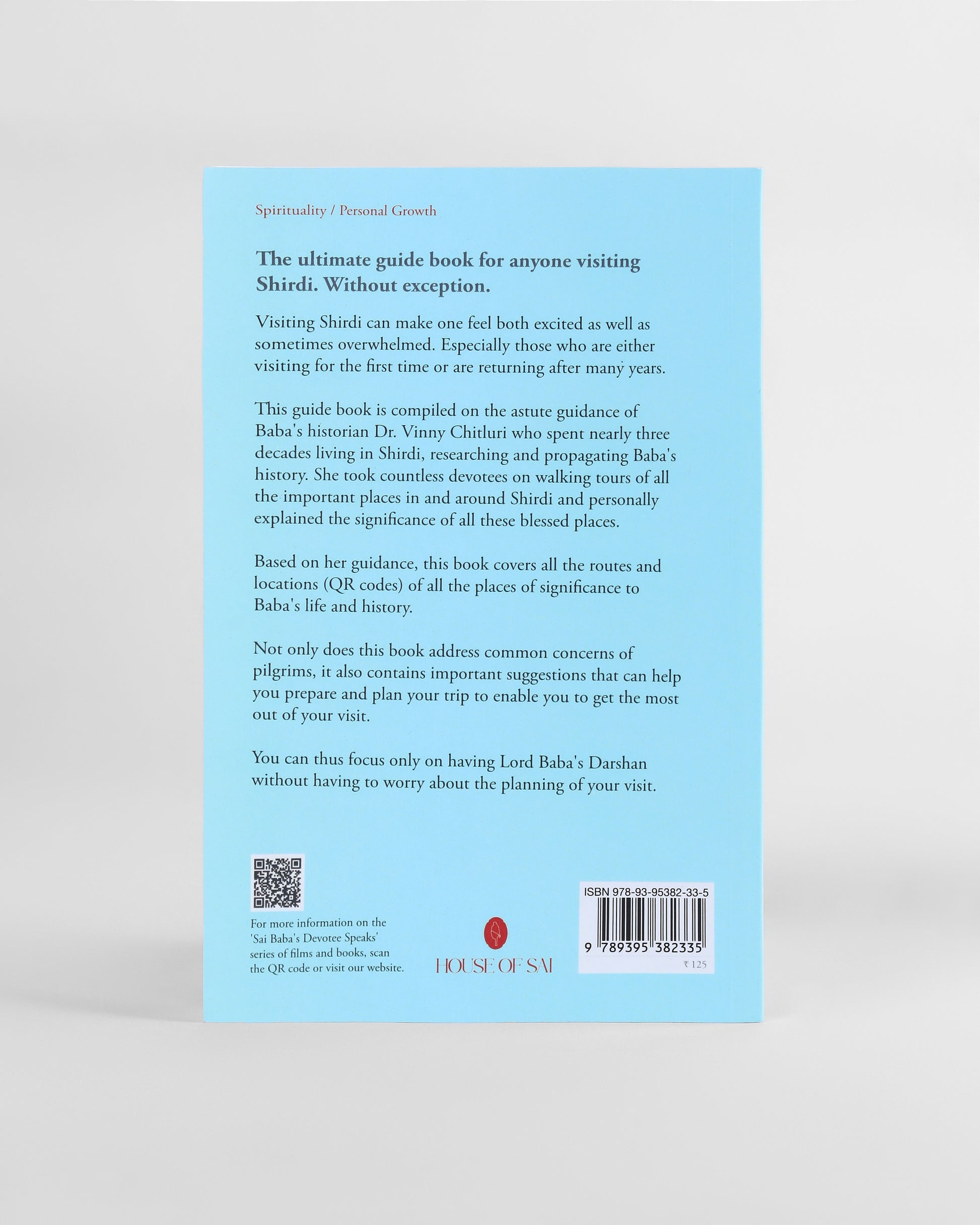 This guide book is compiled on the astute guidance of Baba's historian Dr. Vinny Chitluri who spent nearly three decades living in Shridi, researching and propagating Baba's history. She took countless devotees on walking tours of all the important places in and around Shirdi and personally explained the significance of all these blessed places.