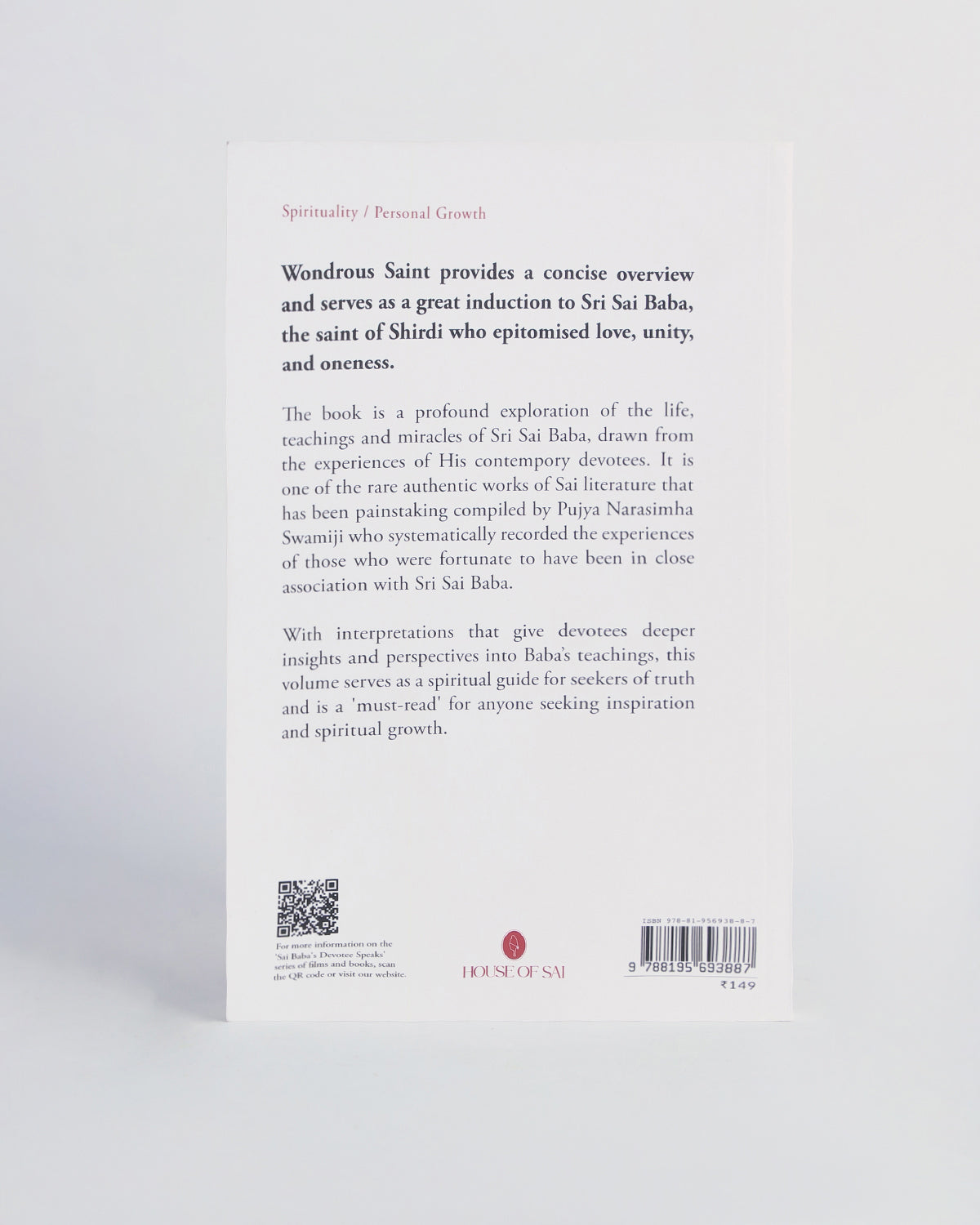 Wondrous Saint is one of the few rare books that serves as a valuable introduction to Sri Sai Baba, the great Saint of Shirdi. It provides glimpses into His life, teachings, and unique methods of imparting spiritual instruction and protection to His devotees.